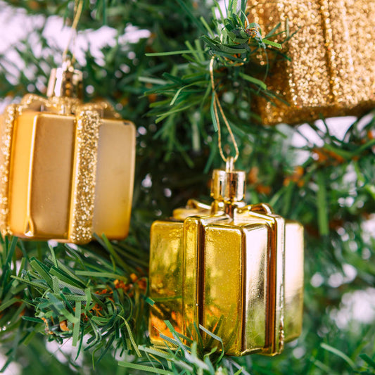Ta zlati okrasek za božično drevo v obliki darila se odlično ujema z božičnimi okraski. Njegova sijoča površina odbija svetlobo okolice in tako zagotavlja osupljiv pogled. Okrasek iz trpežne plastike lahko krasi vaše božično drevo več let. Lahko je nepogrešljiv pripomoček za okrasitev borovcev, girland in namizne dekoracije, ki...