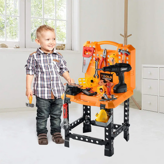 Naj vaš malček postane pravi mali mojster! 🛠️ Ta čudovit otroški komplet z igralno mizico za orodje vključuje kar 100 različnih kosov – od kladiva, žage, izvijačev, klešč pa vse do električnega vrtalnika na baterije. Mizica meri 68 x 34...