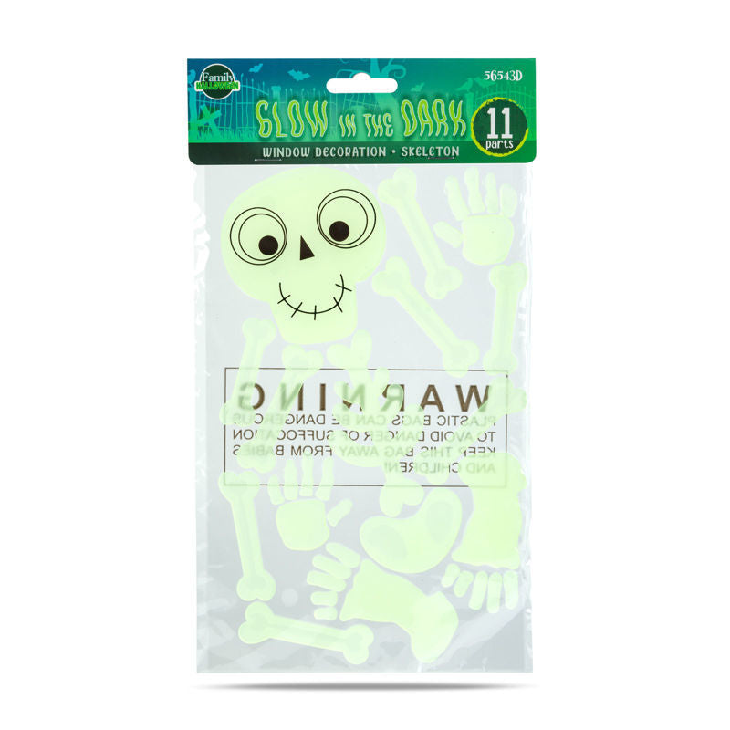Praznovanja noči čarovnic postajajo vse bolj priljubljena, saj ljudje z navdušenjem krasijo svoje domove, izrezujejo svetleče buče in se preobrazijo s strašljivim make-upom. Odličen dodatek k vsaki tematski dekoraciji je ta fosforescentna okenska dekoracija, ki v temi zasije v zelenem odtenku. Dekoracija je izdelana iz mehke gel mase, je samolepilna, enostavna za uporabo in jo lahko brez skrbi uporabljate večkrat, saj je pralna.