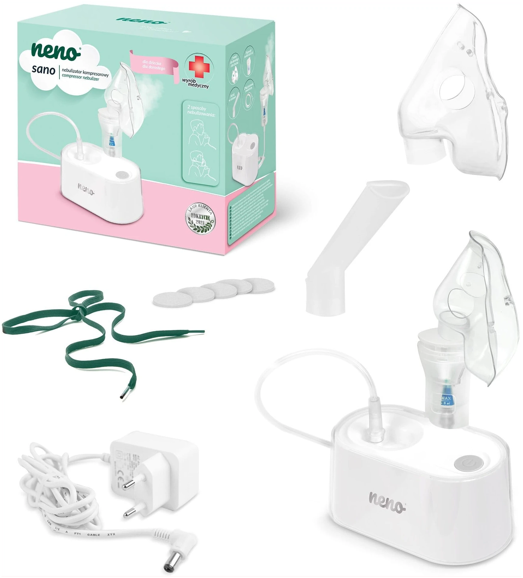 NENO Sano je profesionalni pnevmatski batni kompresorski inhalator, ki zagotavlja učinkovito inhalacijsko terapijo za zdravljenje astme, bronhitisa, alergij in drugih bolezni dihalnih poti. Idealen za domačo uporabo za vso družino.