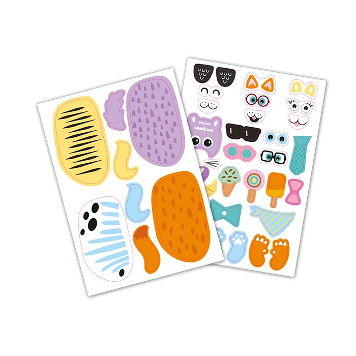 Posebna izdaja Design a Pet vključuje nalepke za večkratno uporabo, s katerimi lahko otroci svojim zobnim ščetkam kadar koli dajo novo podobo poljubne živali. Naj ščetkanje postane zabaven del njihovega vsakdana.