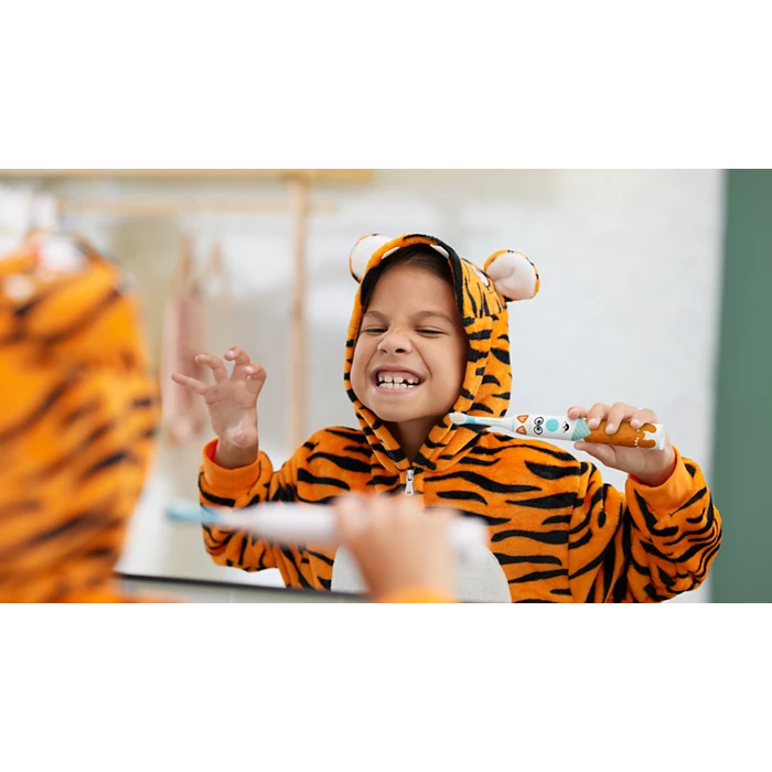 Z nežnim pulzirajočim delovanjem čisti globoko med zobmi in ob robovih dlesni. Tako so otroci deležni najboljšega možnega čiščenja, tudi če se šele učijo ščetkanja.