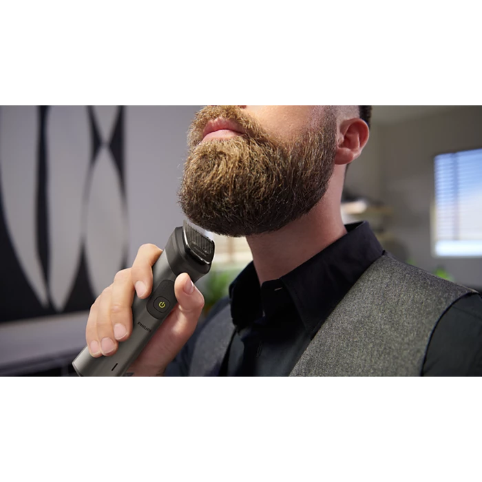 • Tehnologija BeardSense: zazna gostoto brade 125-krat na sekundo in prilagodi moč za enakomerno prirezovanje tudi gostih brad